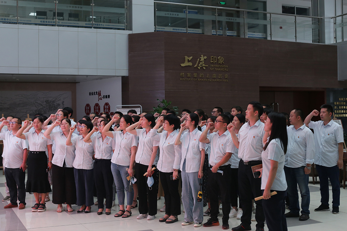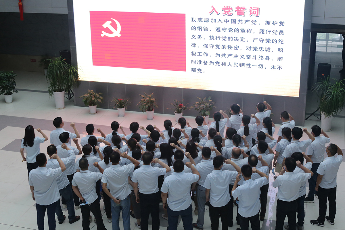 “我志愿加入中国共产党,拥护党的纲领,遵守党的章程……”,在鲜红的中国共产党党旗下,英国威廉希尔公司官网全体党员高举右拳庄严重温入党誓词。