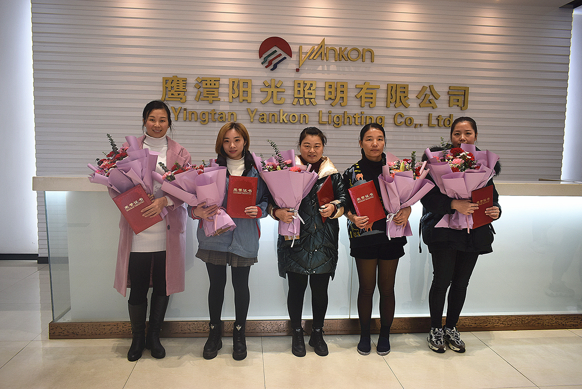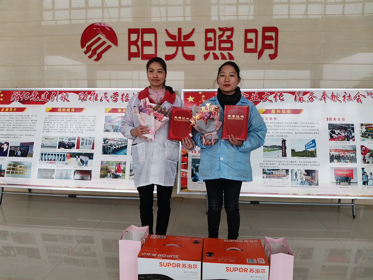 余江基地的徐丽辉是筒灯车间的一名清尾工,她急工厂所急,年初主动去各地招人补足;金寨基地的王静是电子制造部的一名组长,在她的带领下该组在5S评比中总是拔优,每天都是超额完成产量;厦门基地的卢雪雯是装配车间的一名多功能工,总能在各个岗位上在关键时刻填补空缺,使生产能保质保量完成;上虞基地自动线球泡车间的张营军是一名线长,在她的严格管理下,该线全年合格率达到100%,是全车间的榜样……
