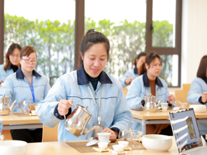 会场上乐声悠扬、茶香悠远。茶艺老师从茶叶的起源、分类、功效与作用以及泡茶知识技巧等方面进行讲解,并现场演示了红茶的冲泡流程,做了精彩的茶艺表演。