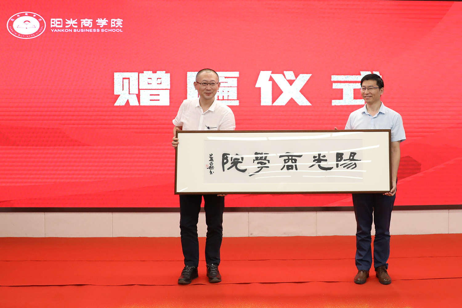 随后,吴正喆在仪式现场为商学院挥书赠匾并送上美好祝愿:“独木不林、单弦不音,上下同心,里外同频,共同把商学院发展好。”与会嘉宾、经销商代表和员工一起见证了这庄严而喜庆时刻。